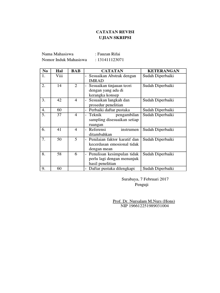 Contoh Revisi Skripsi - Ide Judul Skripsi Universitas